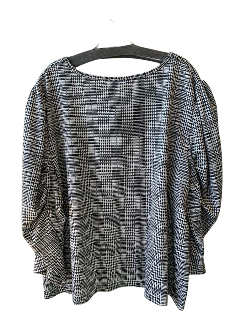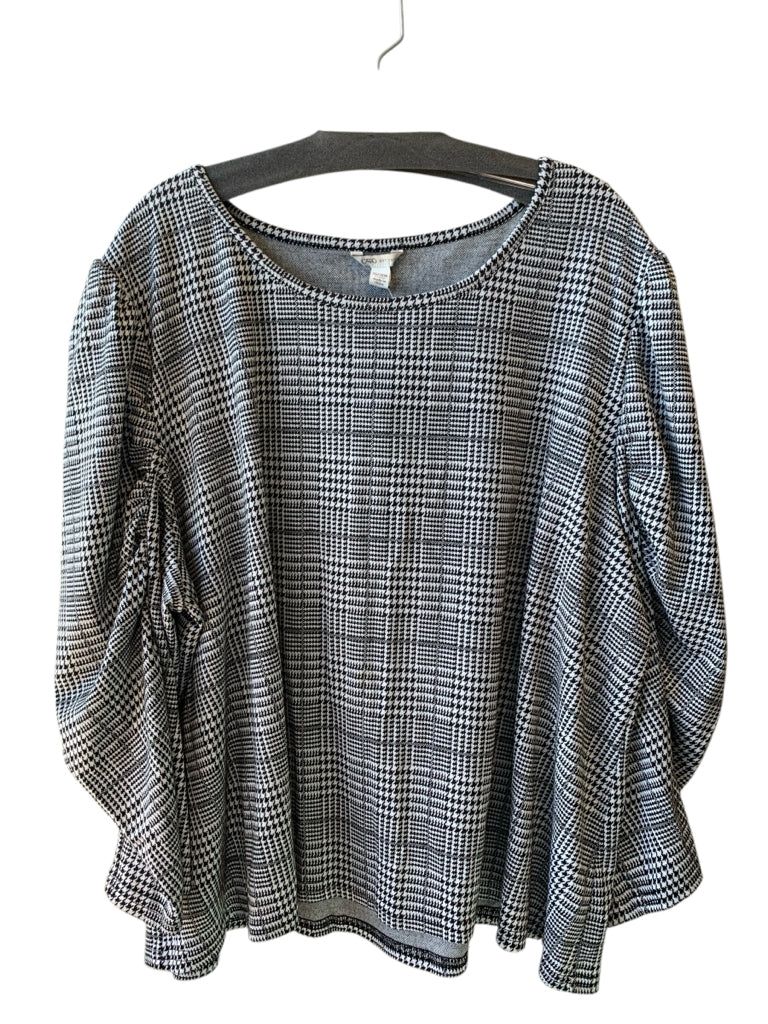 GRAY BLACK HOUNDSTOOTH PRINT LS