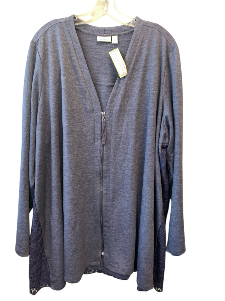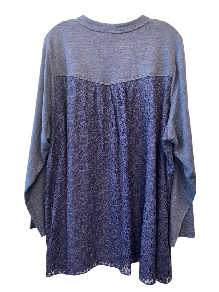 BLUISH GRAY LACE BACKSIDE ZIP UP LS