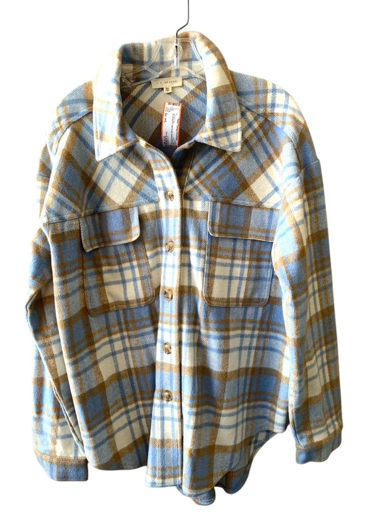 BLUE WHITE TAN PLAID SHACKET LS
