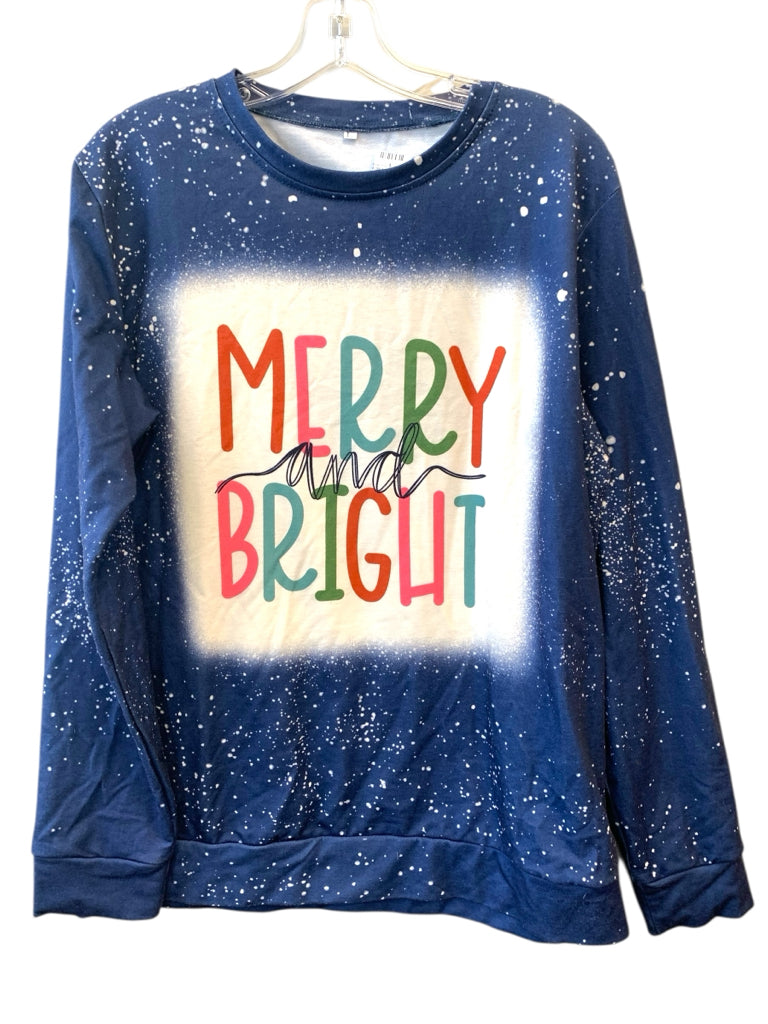NAVY WHITE SPECKLED "MERRY & BRIGHT" LS