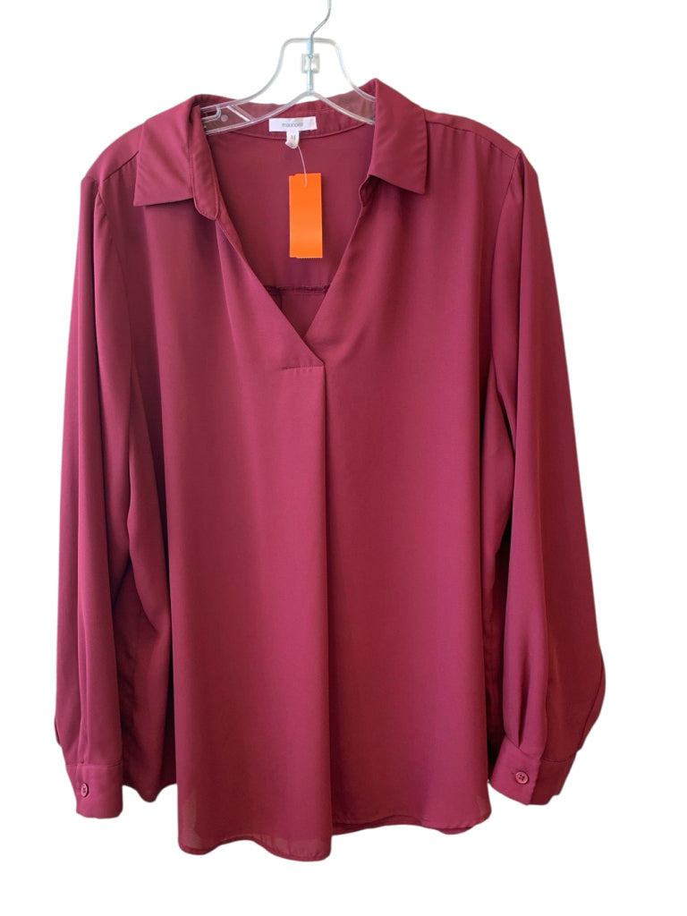 MAROON SHEER VNECK LS
