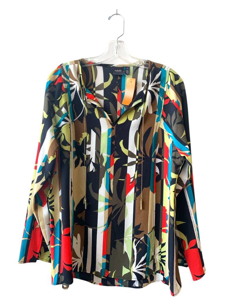 TAN BROWN GREEN BLACK RED PRINT LS